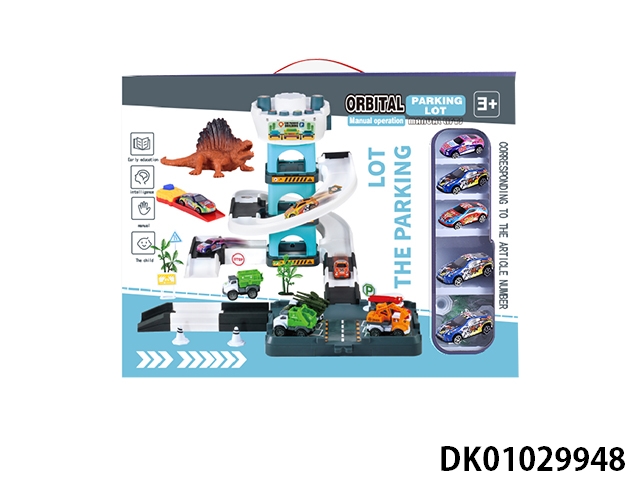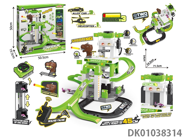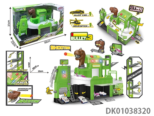 (Light and music, ejection and lifting) interphone, soft bomb, multi-function dinosaur world parking lot kit (equipped with 3 alloy cars, 1 aircraft and 3 soft bombs) 3pcs 1.5v aa battery does not pack electricity