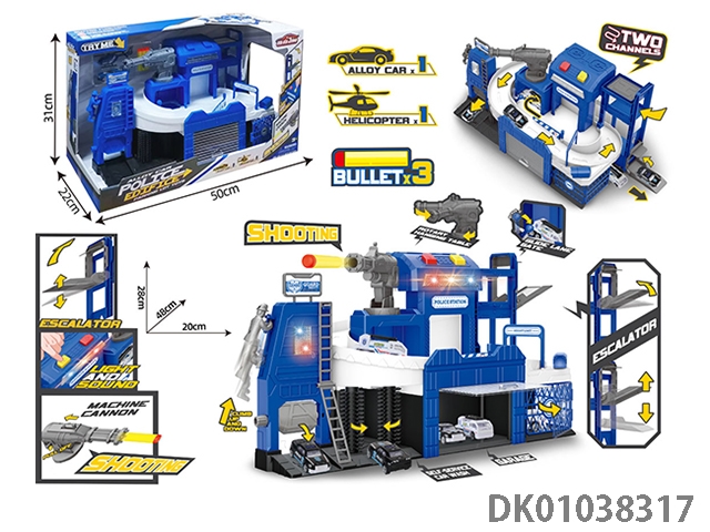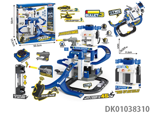 (Lighting and music, ejection and lifting) interphone, soft bomb, multi-function police headquarters parking lot kit (equipped with 3 alloy cars, 1 aircraft and 3 soft bombs) 3pcs 1.5v aa battery does not pack electricity