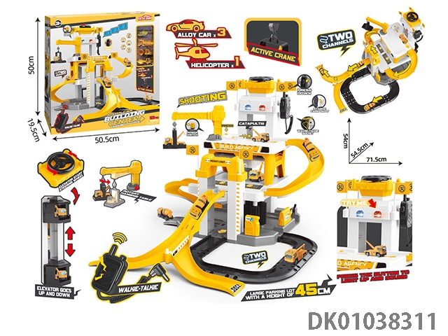 (Lighting and music, ejection and lifting) interphone, building, multi-function engineering headquarters parking lot kit (equipped with three alloy cars and one aircraft) 3pcs 1.5v aa battery without power