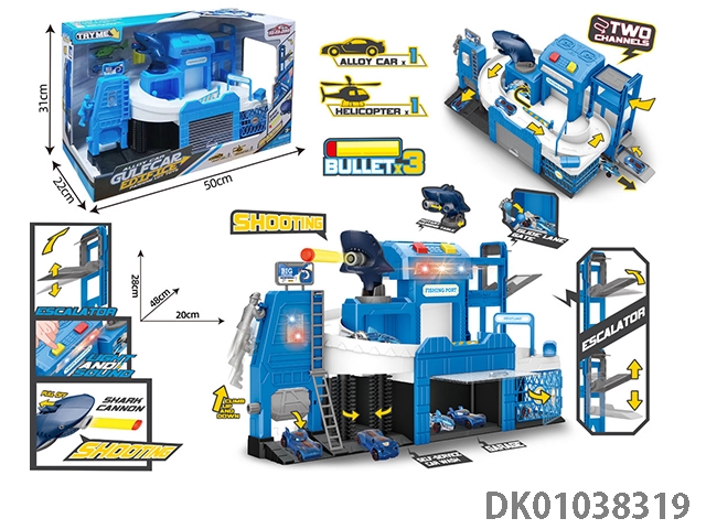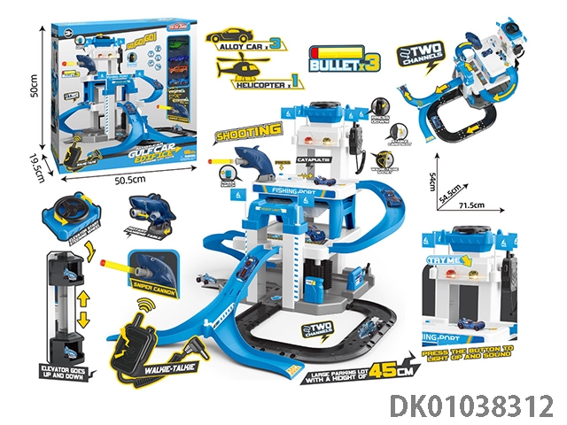 (Light and music, ejection and lifting) interphone, soft bomb, multi-function marine shark parking lot kit (equipped with 3 alloy cars, 1 aircraft and 3 soft bombs) 3pcs 1.5v aa battery is not charged