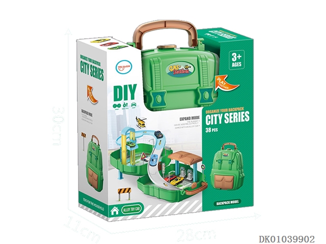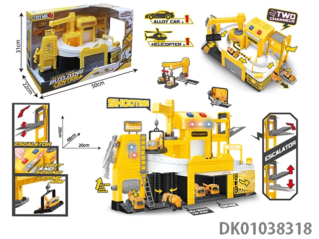 (Light and music) building, multi-function engineering headquarters parking kit (with 1 alloy car and 1 aircraft) 3pcs ag13 button battery and 2 1.5v aa batteries