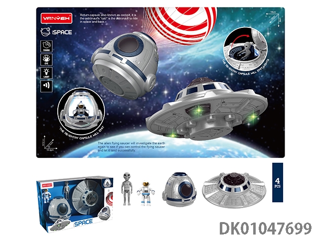 Space science popularization, science and education version, light and music, space suit, ejection vehicle, space return module, space exploration vehicle and three astronauts (including button battery ag13, three)