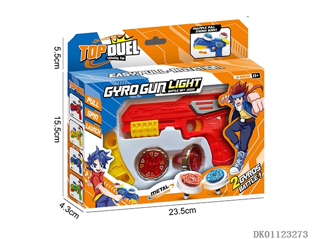 Hand pull ejection gyroscope gun with 2 light gyroscopes