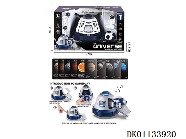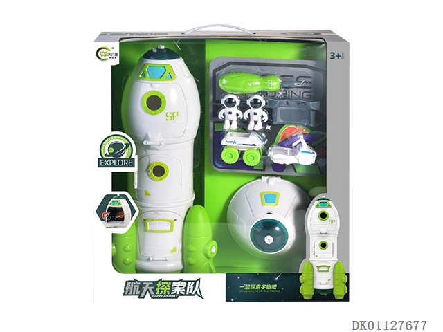 Light, music, space suit, launch vehicle, space reentry capsule, space exploration vehicle and 3 astronauts (including 3 button batteries ag13)