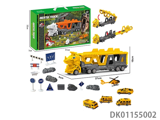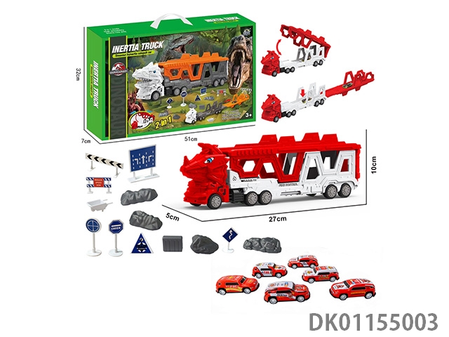 Tractor deformation triangular dragon fire truck ejection track set