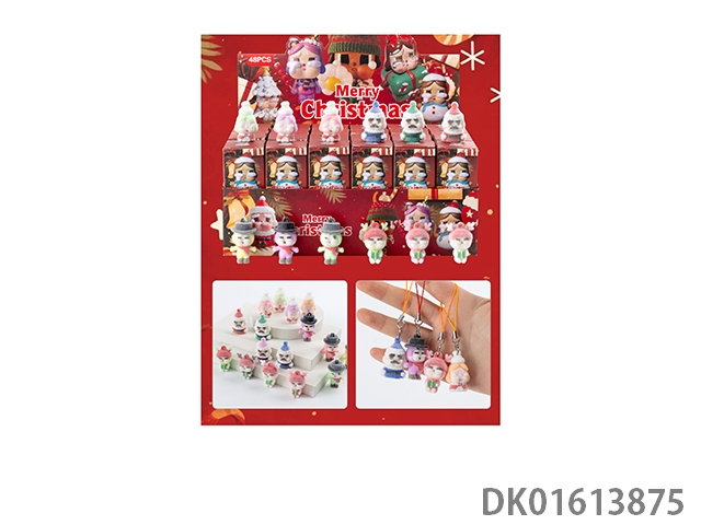 Christmas cloth soft rubber hanging rope blind box/flocking style/mixed color mixed style 48 pieces/box