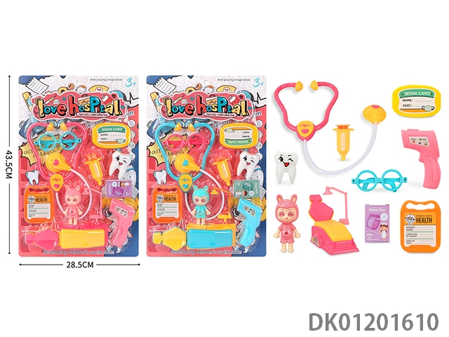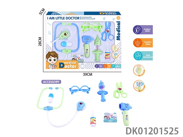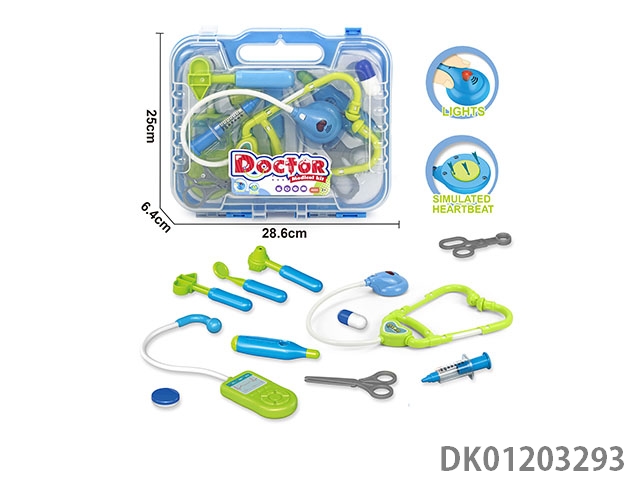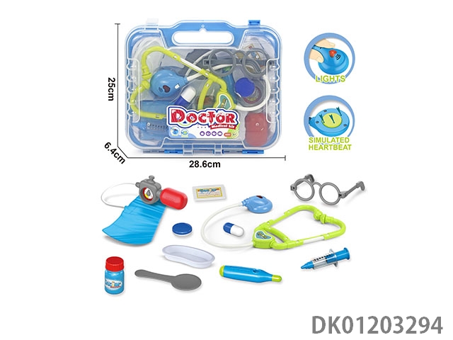 Doctor set, stethoscope light, heartbeat sound, 2 ag10 tablets, battery pack