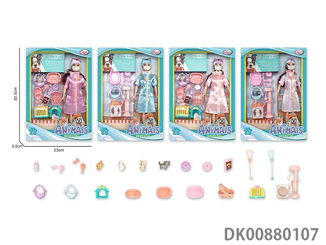 Pet hospital series female nurse multicolor mixed cat and dog house