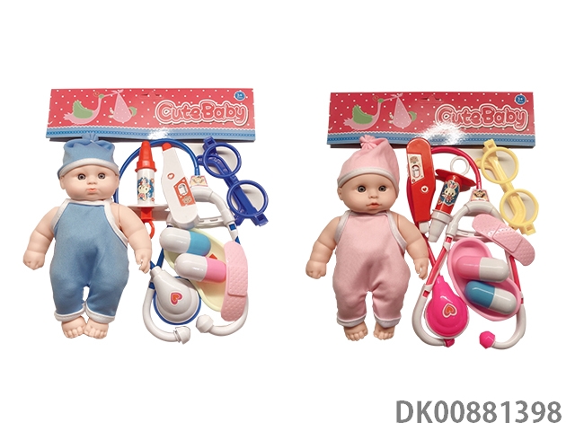 8-Inch enamel facial expression doll with 8-piece set of medical tools