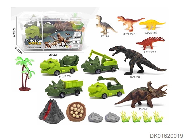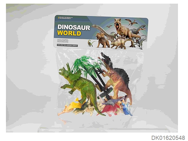 2 6.5-inch dinosaurs paired with 12 small dinosaurs