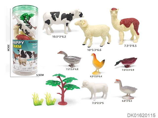 Nine farm animals in the middle cylinder
