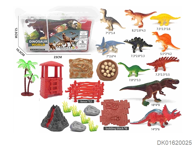 Rectangular handheld box dinosaur scene building blocks 8 fence