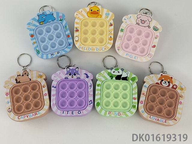 Mini cartoon shaped decompression press key chain candy toy (24 bags/box)