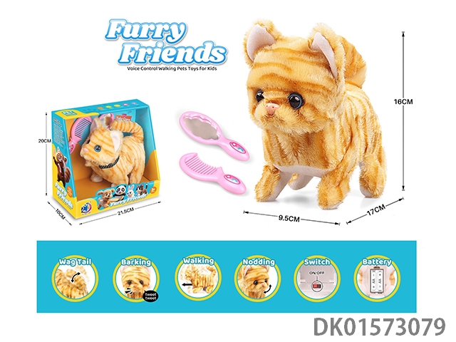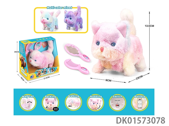 Electric plush walking short cat (tri color mixed)