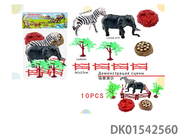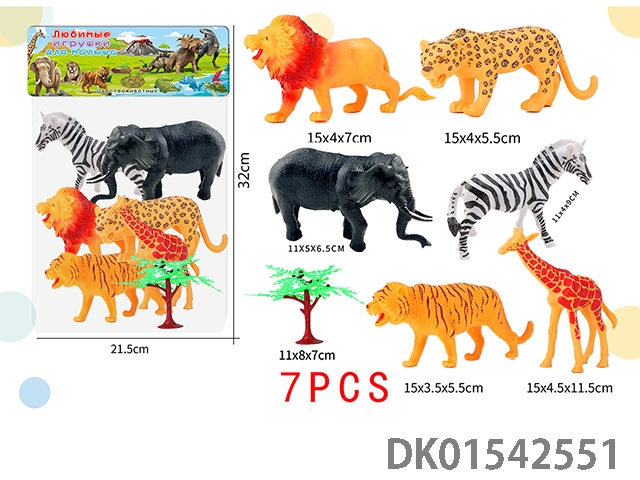 Environmental wildlife zebra elephant 7-piece set (russian)