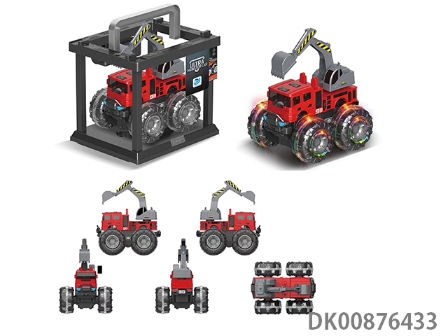 7彩轮惯性消防挖掘车(灯光汽车声,包电3*AG13)