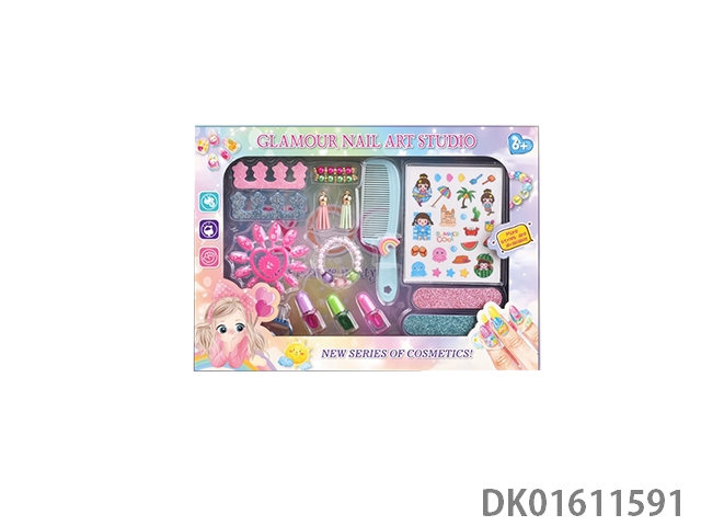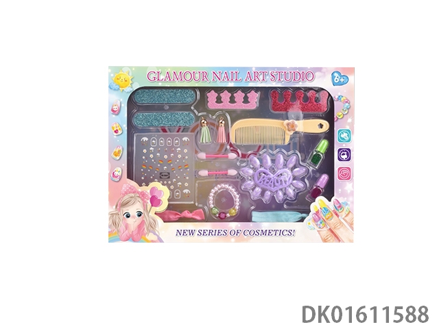 跨境儿童彩妆儿童化妆品饰品美甲梳扮女孩玩具过家家新款DIY饰品化妆品套装 女孩饰品儿童美甲套装
