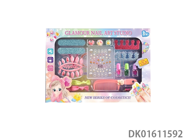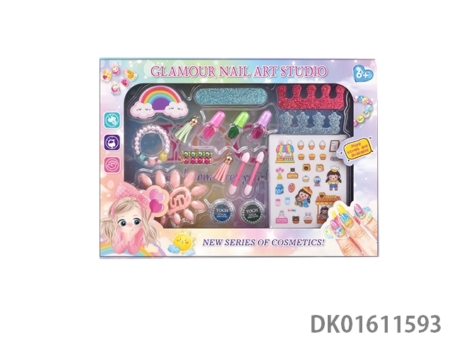 跨境儿童彩妆儿童化妆品饰品美甲梳扮女孩玩具过家家新款DIY饰品化妆品套装 串珠手链饰品儿童美甲套装