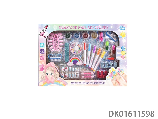 跨镭射境儿童彩妆儿童化妆品饰品美甲梳扮女孩玩具过家家新款DIY饰品化妆品套装 女孩饰品儿童美甲套装