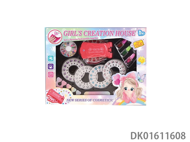 跨境镭射儿童彩妆儿童化妆品饰品美甲梳扮女孩玩具过家家新款DIY饰品化妆品套装 串珠手链饰品儿童美甲套装