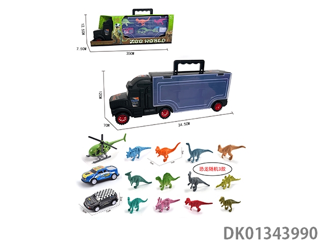 36CM手提货柜车3只恐龙+2铁皮车+1只飞机