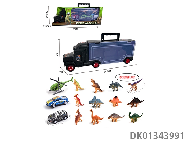 32CM手提拖头货柜车12只恐龙
