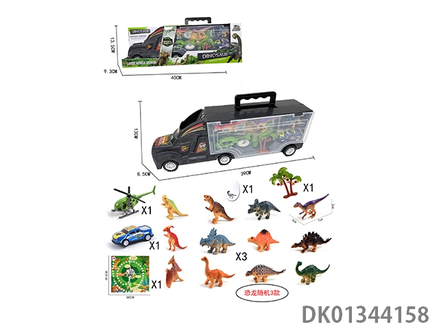 36CM手提拖头货柜车12只恐龙+3棵树