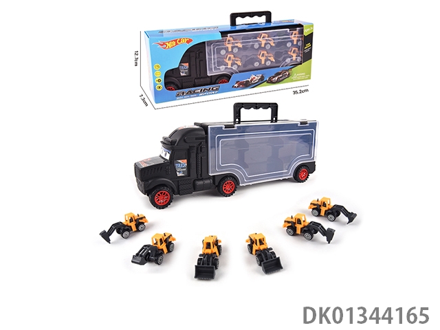 手提收纳货柜滑行拖头车带6只滑行仿真工程车仔