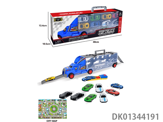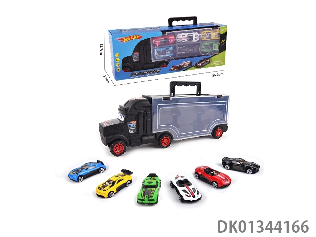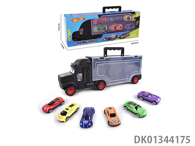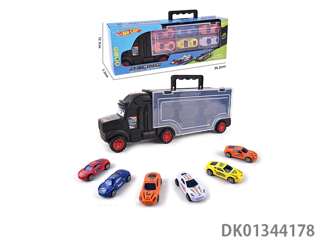 手提收纳货柜滑行拖头车带6只滑行合金赛车