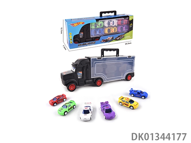 手提收纳货柜滑行拖头车带6只回力赛车