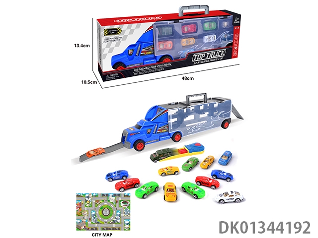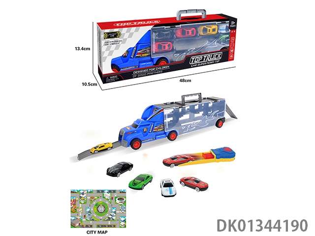 手提礼盒货柜拖头车带10只合金赛车+2块滑板+1弹射片+1地图
