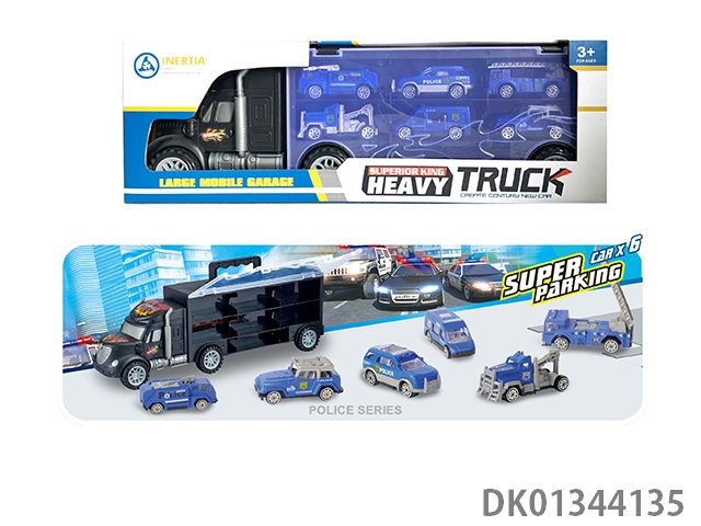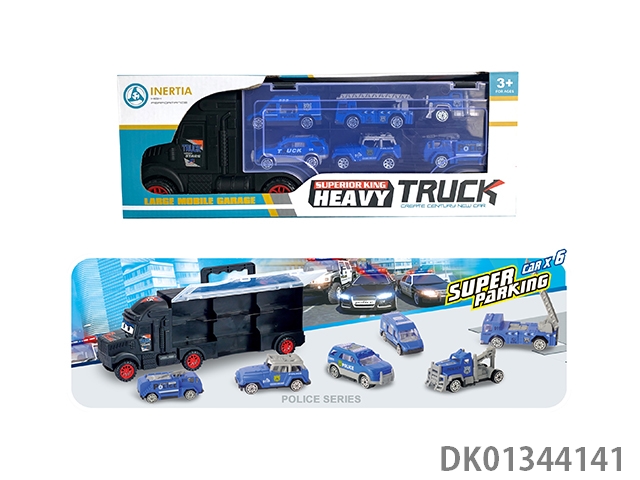 手提滑行收纳货柜车(6只滑行合金警车仔)