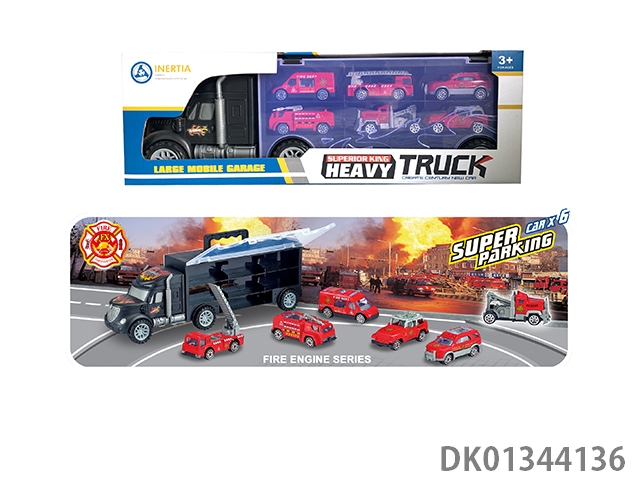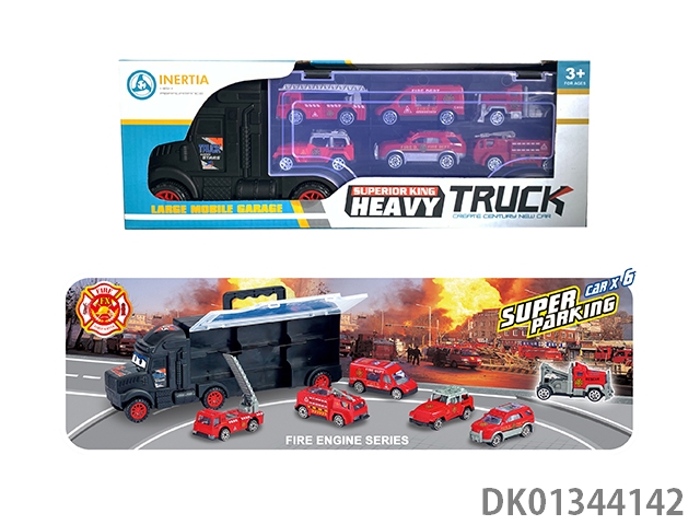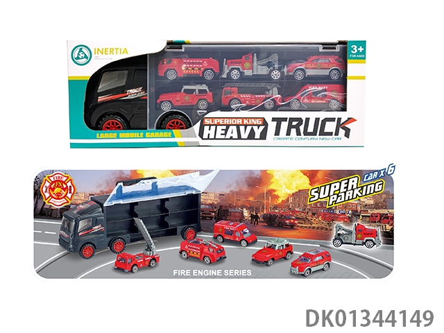 手提滑行收纳货柜车(6只滑行合金消防车仔)