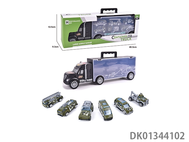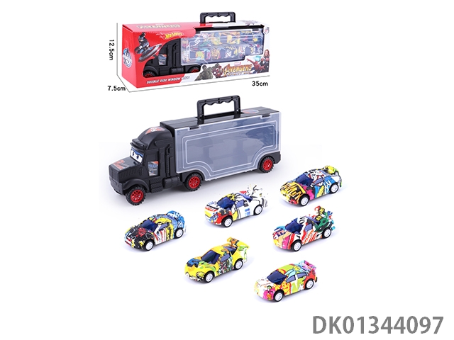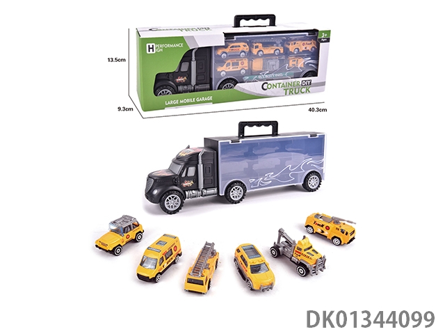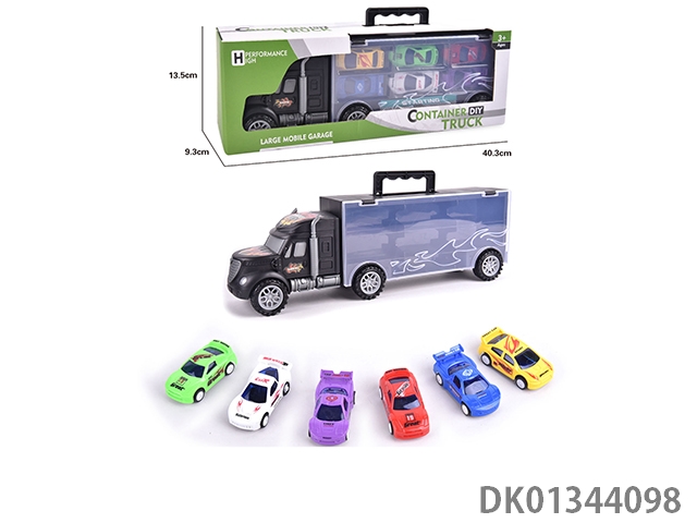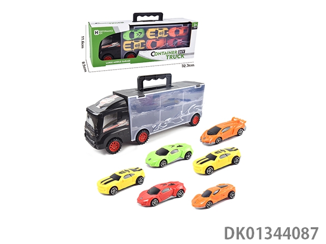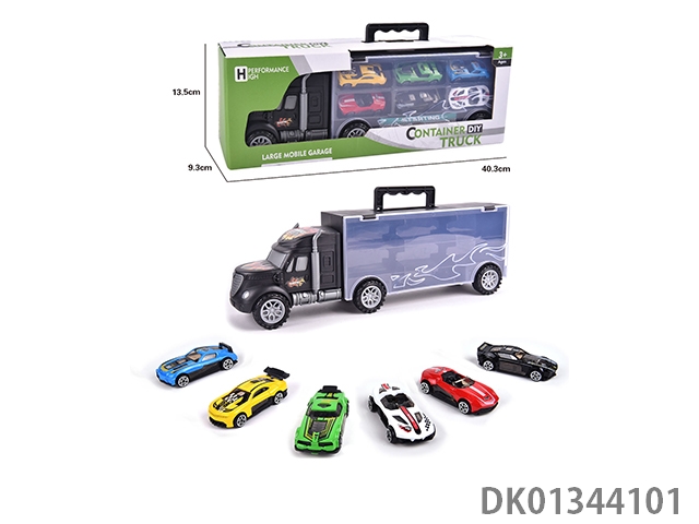 手提礼盒货柜滑行拖头车带6只滑行合金赛车