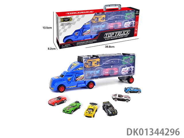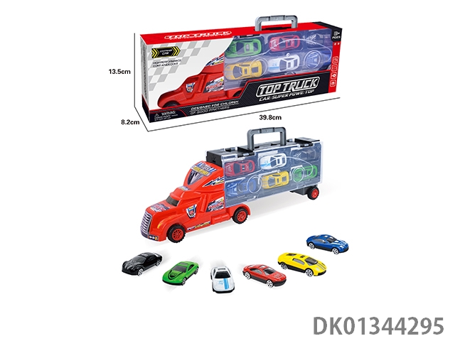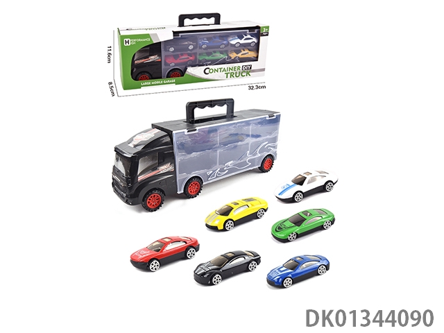 手提礼盒货柜拖头车带6只合金跑车(单面)
