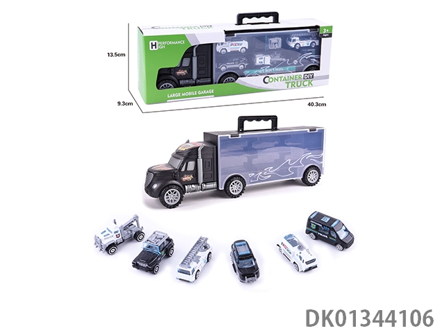 手提礼盒货柜滑行拖头车带6只滑行合金警车