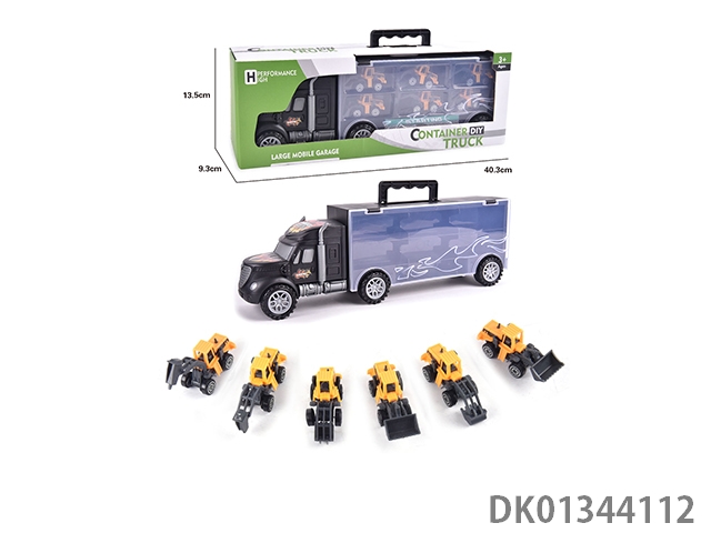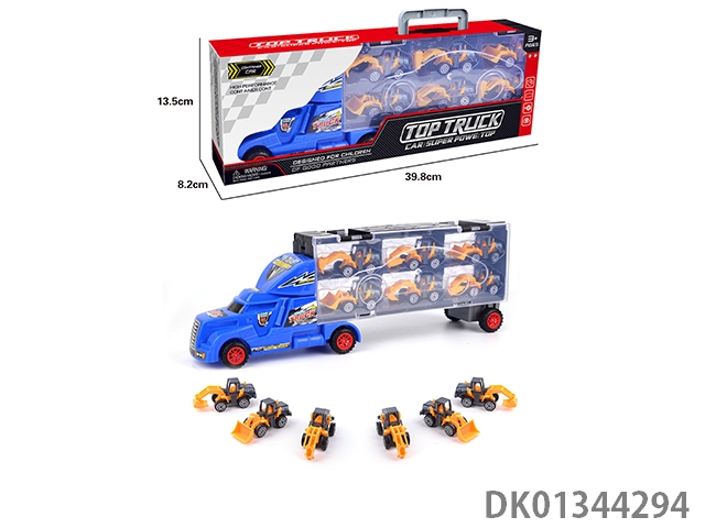 手提礼盒货柜拖头车带6只滑行仿真工程车(单面)