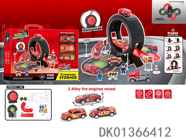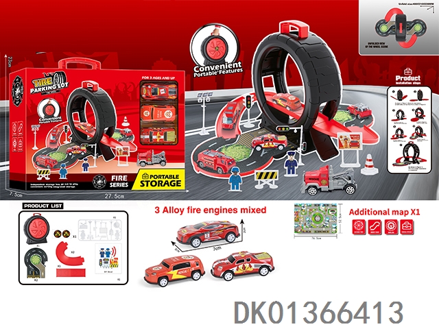 消防轮胎场景收纳盒(3铁皮车+地图)