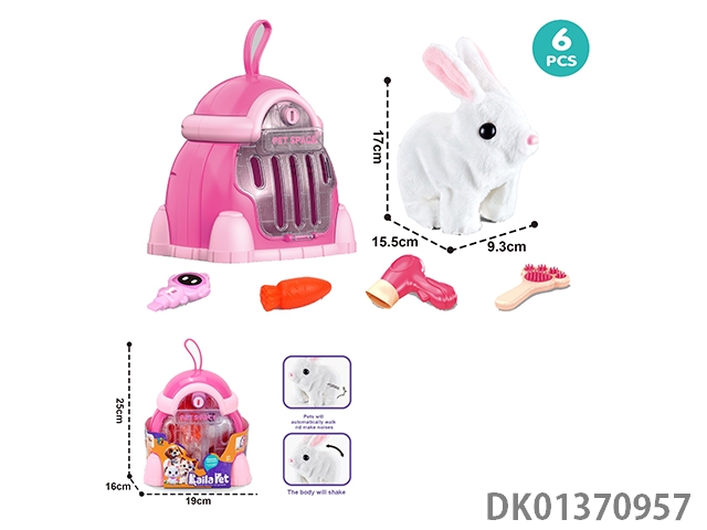 萌宠大推箱洗护套装配电动兔子带声音用2粒AA不包电