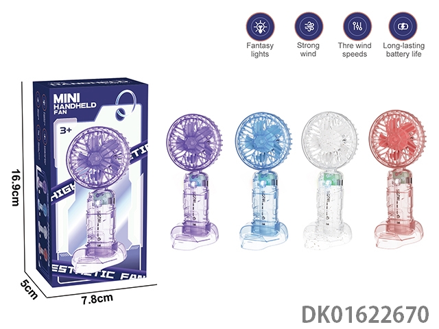 透明炫酷呼吸灯迷你电动手持风扇(带底座)