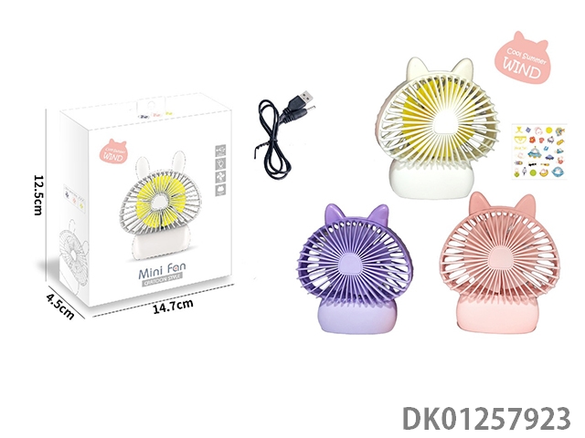 蘑菇小猪带灯光充电风扇(USB)(赠送DIY贴纸)