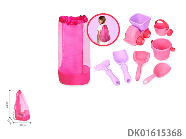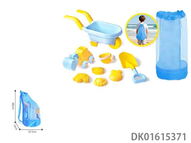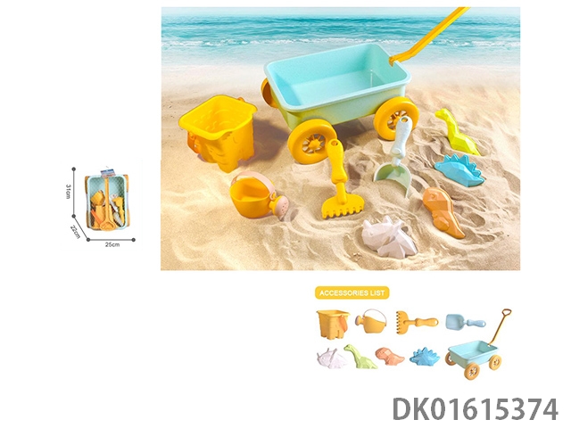 麦秆拖车软胶城堡桶沙模铲耙沙滩玩具9件套