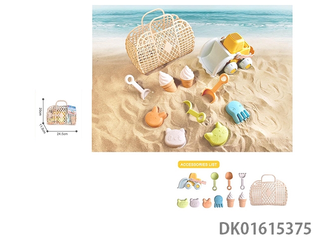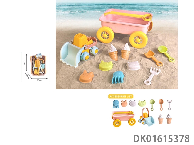麦秆拖车推土车冰淇淋沙模沙滩玩具11件套