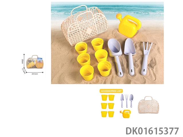 手提篮园艺洒水壶铲耙沙滩玩具11件套