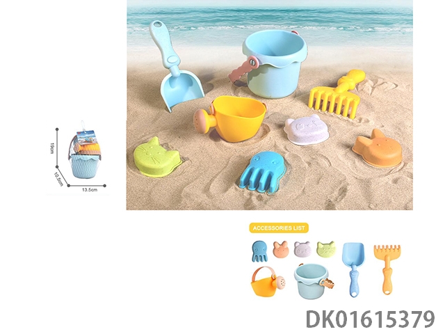 软胶小桶铲耙动物沙模沙滩玩具8件套