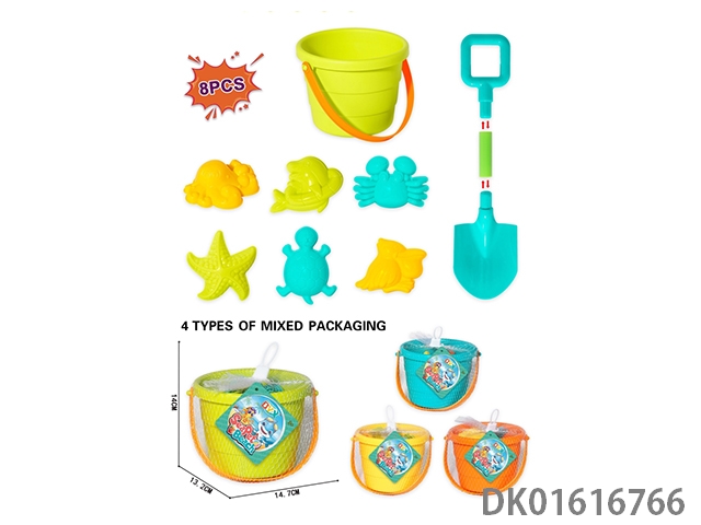 软胶桶麦秆沙模麦秆小铲耙沙滩玩具8件套24只/盒