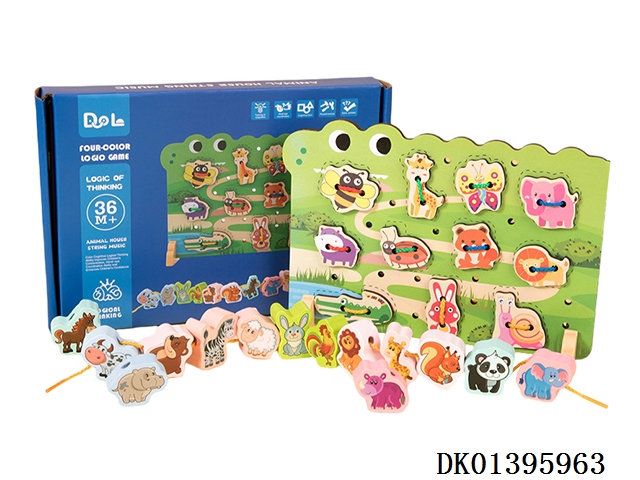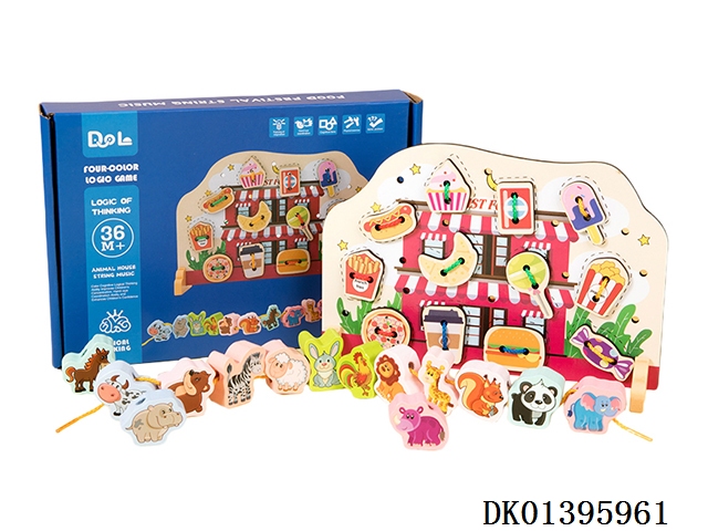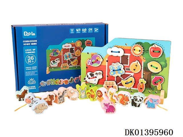 木制农场动物穿绳串珠二合一