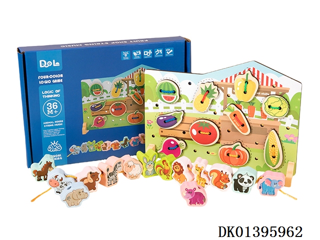 木制食物动物穿绳串珠二合一