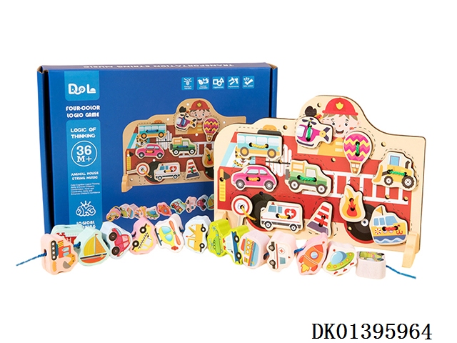 木制交通穿绳串珠二合一