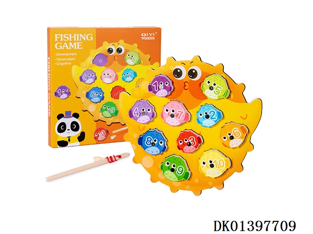 木制河豚钓鱼配对游戏